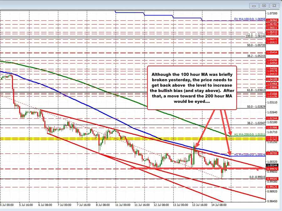 Technically, traders will eyeing the 100 hour MA at 1.00593 on the topside, followed by the high from yesterday at 1.01215, a swing area at 1.01342 to 1.01433 and the falling 200 hour MA at 1.01533. The price has not come close to the 200 hour MA since June 28th.