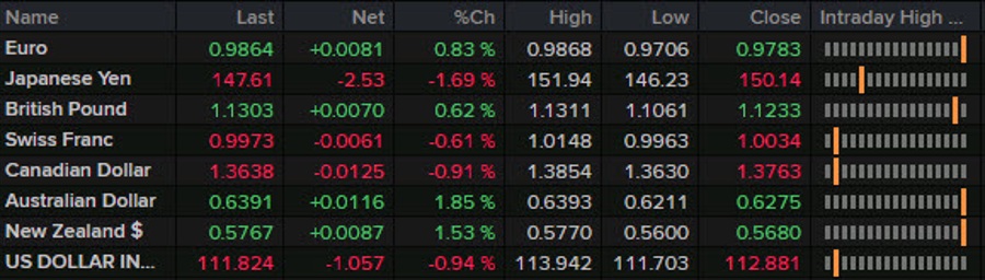 The combination of dovish signals and FX intervention kicked off a rout on the US dollar with the pound reversing heavy losses despite the political turmoil. The euro and commodity currencies also staged large reversals.