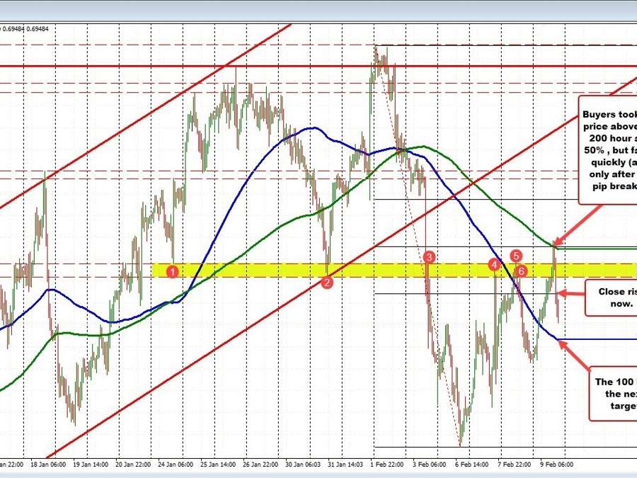 Subsequently, the price has moved back down to a NY session low at 0.6953. The 100 hour MA is below at 0.6936 and would be the next major downside target.