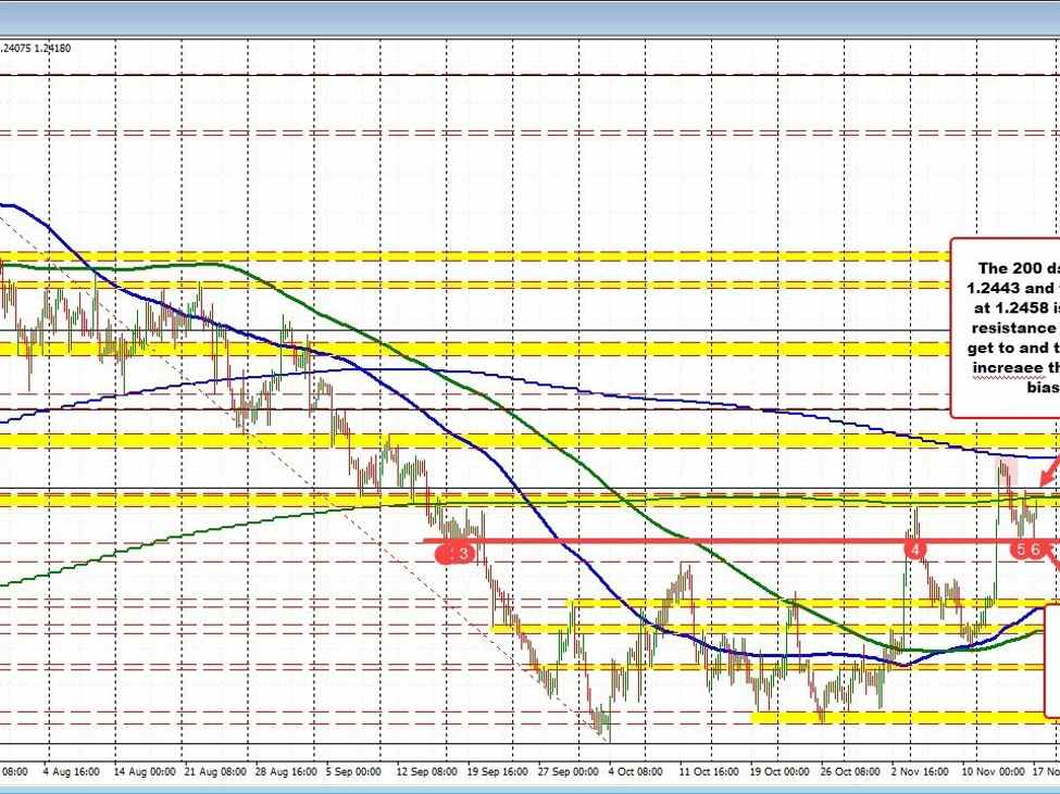 The price has moved up in early US trading but fell short of the 200-hour MA. Ultimately, if the buyers are to take more control, they need to get and stay above the 200-day MA. Those buyers also need to get and stay above the 38.2% retracement as well at 1.2458.