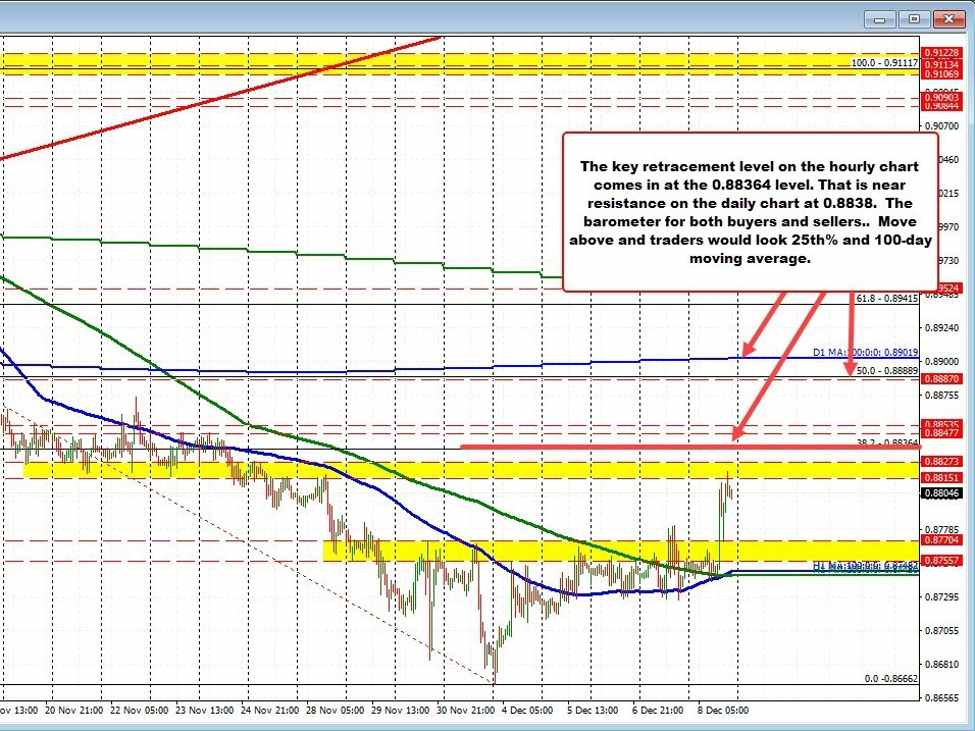 • Do they go higher above the 0.8838 level and extend toward higher targets including the 100-day moving average?
