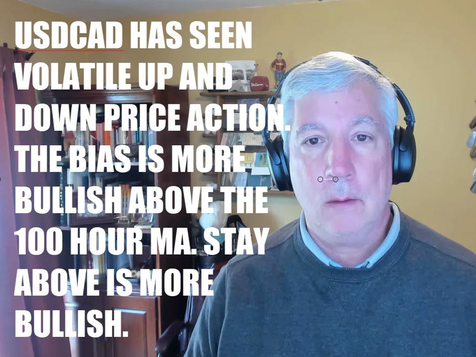 The USDCAD has seen volatile up-and-down price action today. However, if there is a tilt, the tilt is to the upside as the price is above the 100-hour MA at 1.33214. Staying above that level going forward would keep the buyers more in control.